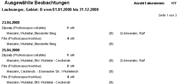 Die Liste sortiert nach der zeitlichen Abfolge der Beobachtungen.