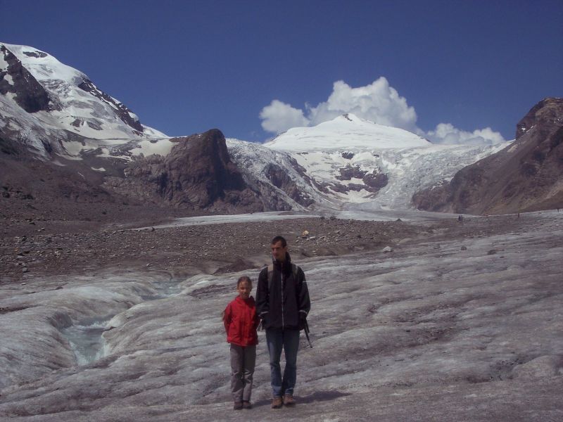 Nur eine halbe Stunde vom Parkplatz entfernt, fühlten wir uns auf der Pasterze am Großglockner in eine völlig andere Welt versetzt. Endlose Schotter- und Schneeflächen mit reißenden Schmelzwasserbächen ließen Hochgebirgsgefühl aufkommen. wenn nur nicht die Touris in Badeschlappen (und kalten Füßen) gewesen wären. Unsere Augen und der Fotoapparat hatten mit den starken Kontrasten zu kämpfen. | |