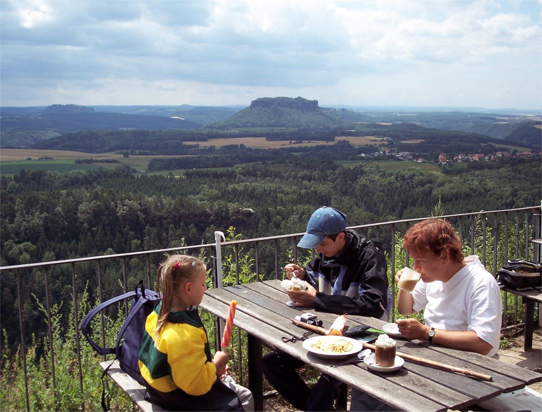 Über dem Tal der Polenz liegt am sog. Brand ein steil abfallendes Hochplateau. Von hier hat man einen fantastischen Blick auf die berühmten Felsen der Sächsischen Schweiz, was aber im Moment niemanden interessiert.