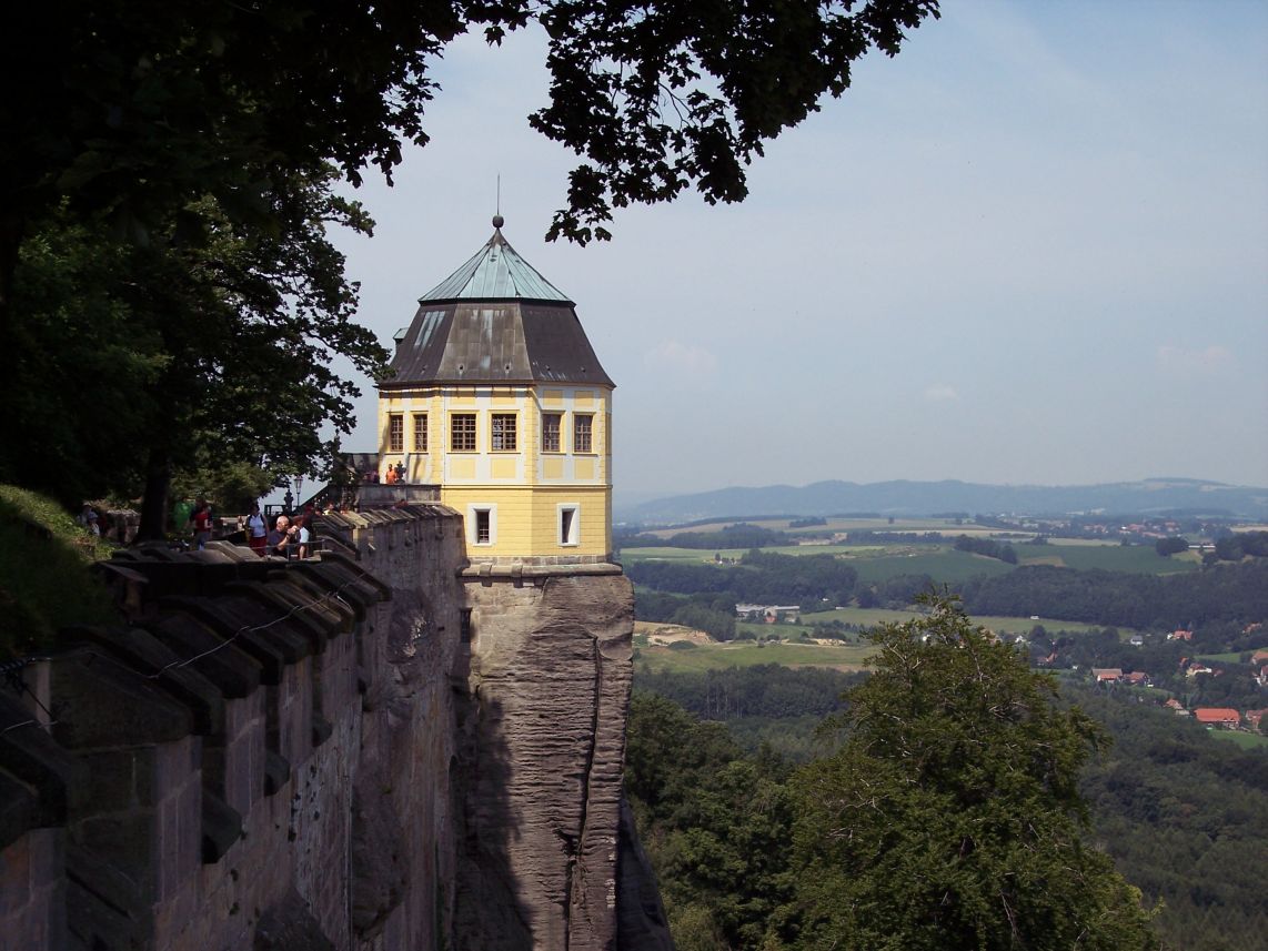 Pavillon auf der Festung Königstein, uneinnehmbar über der Elbe trohnend. Einst Zufluchtsort und Staatsgefängnis der sächsischen Herrscher, wird die Festung in der Hauptsaison von zahllosen Touristen belagert.