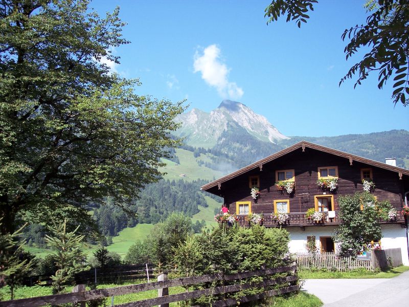 In Dorfgasteins Ortsteil Maierhofen gab es noch mehrere Bauernhöfe mit Viehhaltung am Haus (zusätzlich zur Touristenhaltung). Unsere Gastgeber hatten ihre Pferde und Kühe allerdings im Sommer hoch auf der Alm, was unseren landentwöhnten Nasen zu gute kam. Das großartige Panorama gab es ohnehin gratis dazu. | |