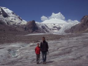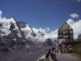 Eine weitere Tour führte uns bei großartiger Sicht über die Hochalpenstraße durch den Nationalpark Hohe Tauern zum Pasterzengletscher unterhalb des Großglockners, mit knapp 3800 m der höchste Gipfel Österreichs. Trotz des dramatischen Abschmelzens des Gletschers in den letzten hundert Jahren, ist es ein außerordentlich beeindruckendes Erlebnis, mitten im Sommer durch Schnee und Eis zu stapfen. Wie unberechenbar das Bergwetter ist, spürten wir auf der Rücktour bei einem Hagelschauer und einem Temperatursturz von 22° auf 5°C. |