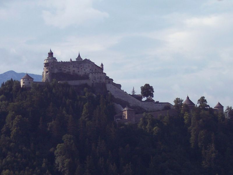 Bereits auf der Bahnfahrt nach Dorfgastein war uns die beeindruckende Burganlage Hohenwerfen über dem Ort Werfen im Pongau aufgefallen. In der fast 1000-jährigen Geschichte der Festung gab es zahlreiche Um- und Ausbauten. Eigentlich nur als Vormittagstrip geplant, gefiel uns es aber so gut, dass wir den ganzen Tag blieben. Nach dem anstrengenden Aufstieg musste es sich aber auch lohnen. | |