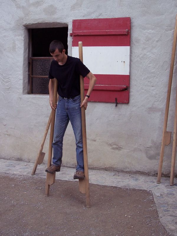 Nachdem sich schon eine komplette Jugendfeuerwehr darüber amüsiert hatte, musste natürlich auch Stefan probieren, wie es sich auf Stelzen läuft. Allerdings benötigte er erstmal fachkundige Hilfe, bis er es wenigstens für ein paar Schritte schaffte. Bogenschießen war dann wieder einfacher. |