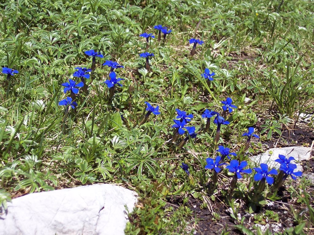 Beim Fotografieren des blauen Enzians (hier vermutlich Frühlingsenzian) sind die Ergebnisse oft enttäuschend, weil das Ultraviolett von der Kamera nicht ordentlich wiedergegeben wird. Dieser Versuch darf als einigermaßen gelungen gelten.