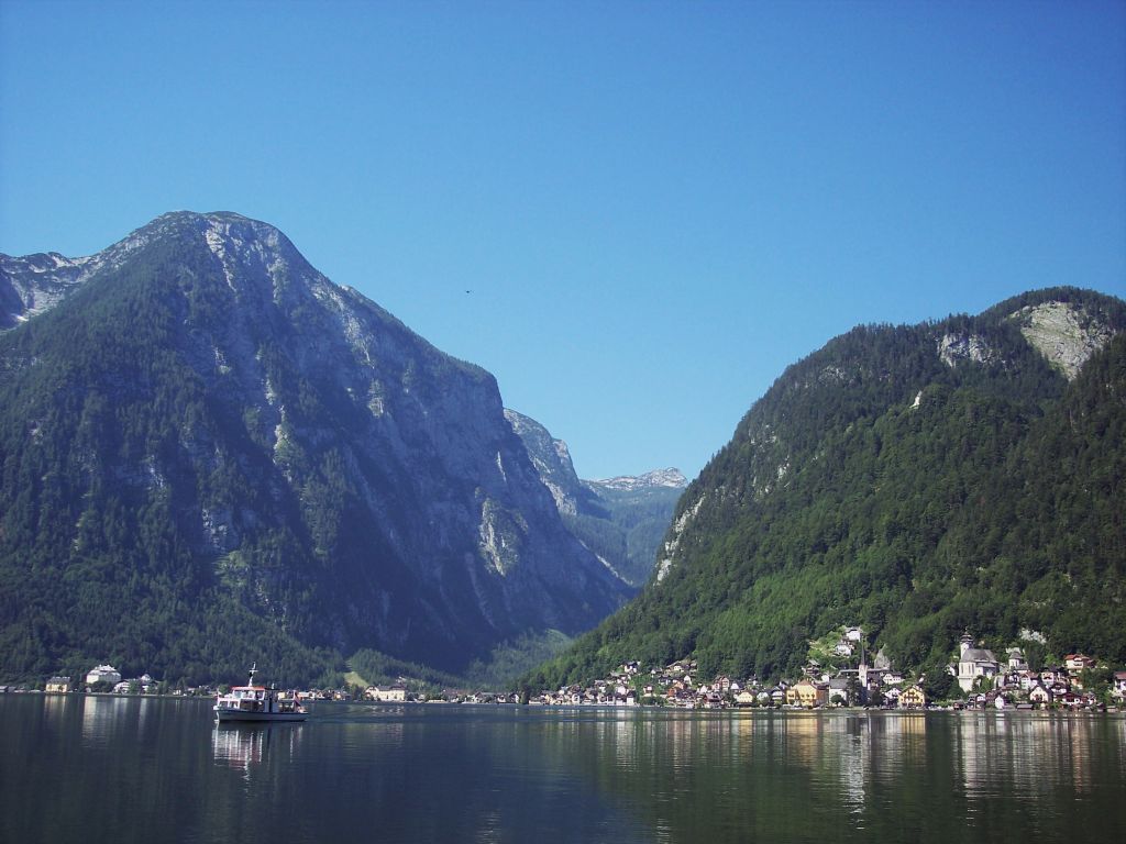 Der Bahnhof Hallstatt liegt am entgegengesetzten Ufer des Hallstätter Sees. Mit einer kleinen Personenfähre kommt man bequem hinüber und kann das unglaubliche Panorama des Salz- und Fischerorts angemessen genießen.