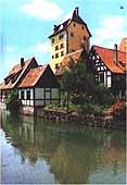 Hersbruck ist eine gemütliche Kleinstadt mit über 1000-jähriger Geschichte, nicht weit von Nürnberg entfernt (1/2-stündliche Bahnverbindung) und immer in dessen Schatten stehend, aber letztendlich auch von Nürnbergs Bedeutung profitierend. Vom Anfang des 15. Jhds. stammen Teile der Stadtmauer, die das Stadtbild prägenden Tore sowie die Kirche. Außerdem findet man eine Reihe alter Bürgerhäuser (im ältesten befindet sich das sehenswerte Deutsche Hirtenmuseum) und einen barocken Schlossbau. Wir waren aber wie immer in einer modernen Ferienwohnung untergebracht. |