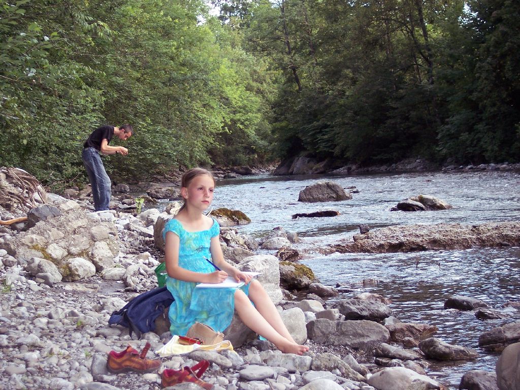 Unsere Ferienwohnung lag etwas abseits der Ortsmitte am Ufer der Trettach. Das hatte den Vorteil, das man hier sehr schön die Abende mit Spielen, Zeichnen und Lesen verbringen konnte oder einfach nur die Gegend genießen.