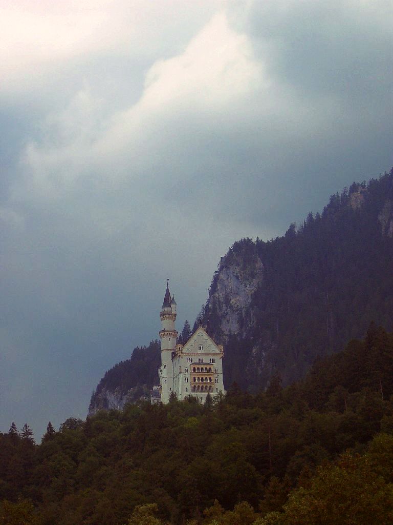 Auf dem Rückweg vom Schloss Neuschwanstein zog eine dicke Regenwolke auf, die das Schloss und die Landschaft herum in ein sehr dramatisches Licht setzten und etwas von dem Zauber erzeugte, das die Anziehungskraft dieses genial in die Landschaft gesetzten Schlosses ausmacht. |