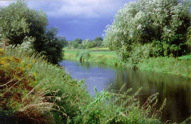 Blick über die Wuhle vom Biesdorfer Berg in Richtung Friedhof Kaulsdorf. Davor befindet sich eine landwirtschaftlich genutzte Fläche (Mähwiese, Feld). Im Bereich des Biesdorfer Berges befindet sich eine der wenigen Stellen ohne ausgebaute Wege. Störungen treten hier am ehesten durch Angler (!) auf. Typisch für den gesamten Wuhleverlauf sind die geschotterten steil abfallenden Ufer, die nur an wenigen Stellen Kleinvögeln wie der Gebirgsstelze die Nahrungsaufnahme ermöglichen. | ||||||||||||||||||||||||||||||||||||||||||||||||||||||||||||||||||